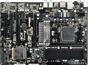 Slots: 2x PCI-Express 2.0 x16 Slots; 2x PCI-Express 2.0 x1 Slots; 2x PCI Slots SATA: 5x SATA3 Ports, Support RAID 0/ 1/ 5/ 10; 1x eSATA3 Port Socket AM3+ Chipset: AMD 970 & SB950 Memory: 4x DDR3-2100(OC)/1866(OC)/1800(OC)/1600(OC)/1333/1066/800 DIMMs